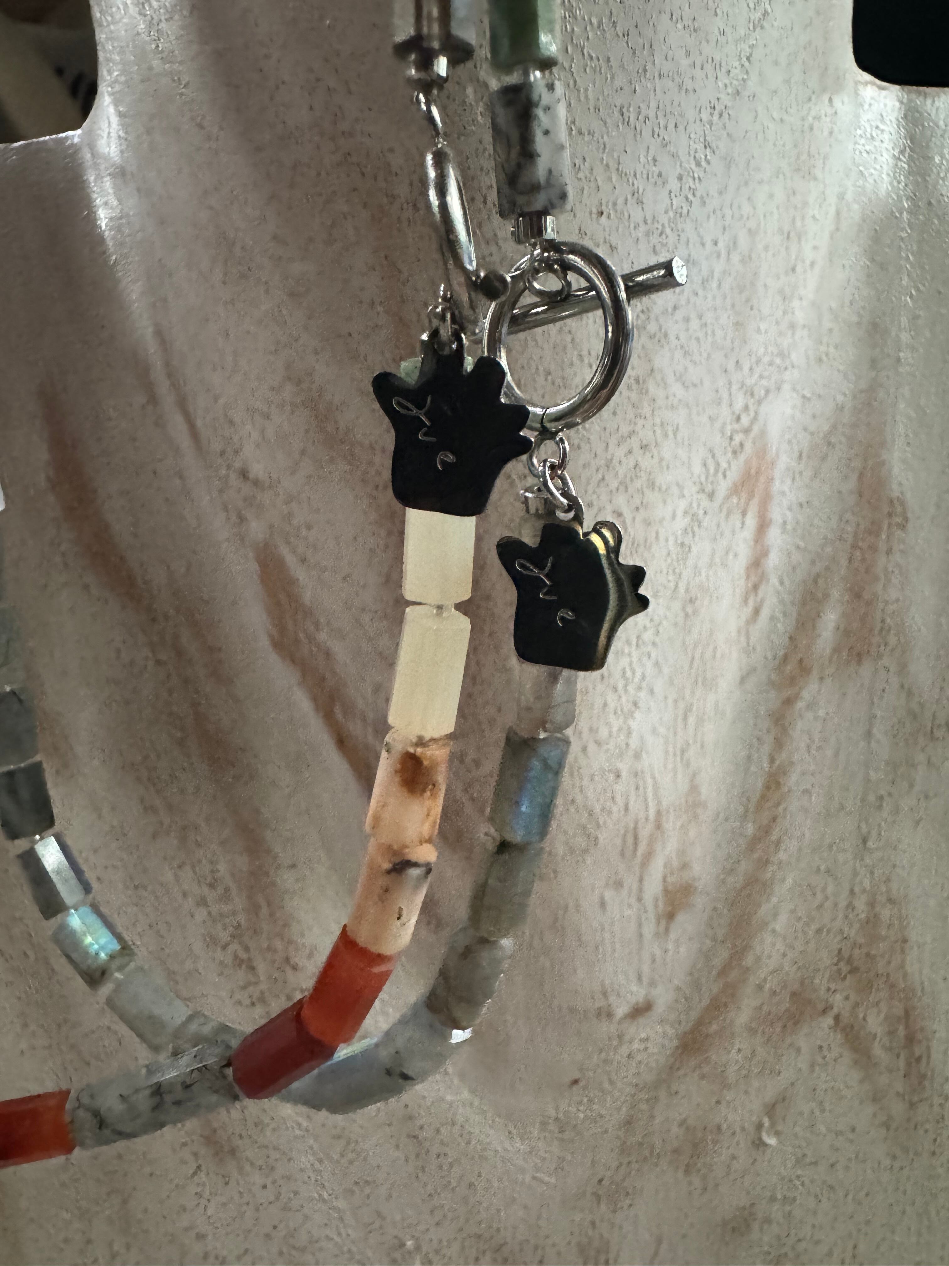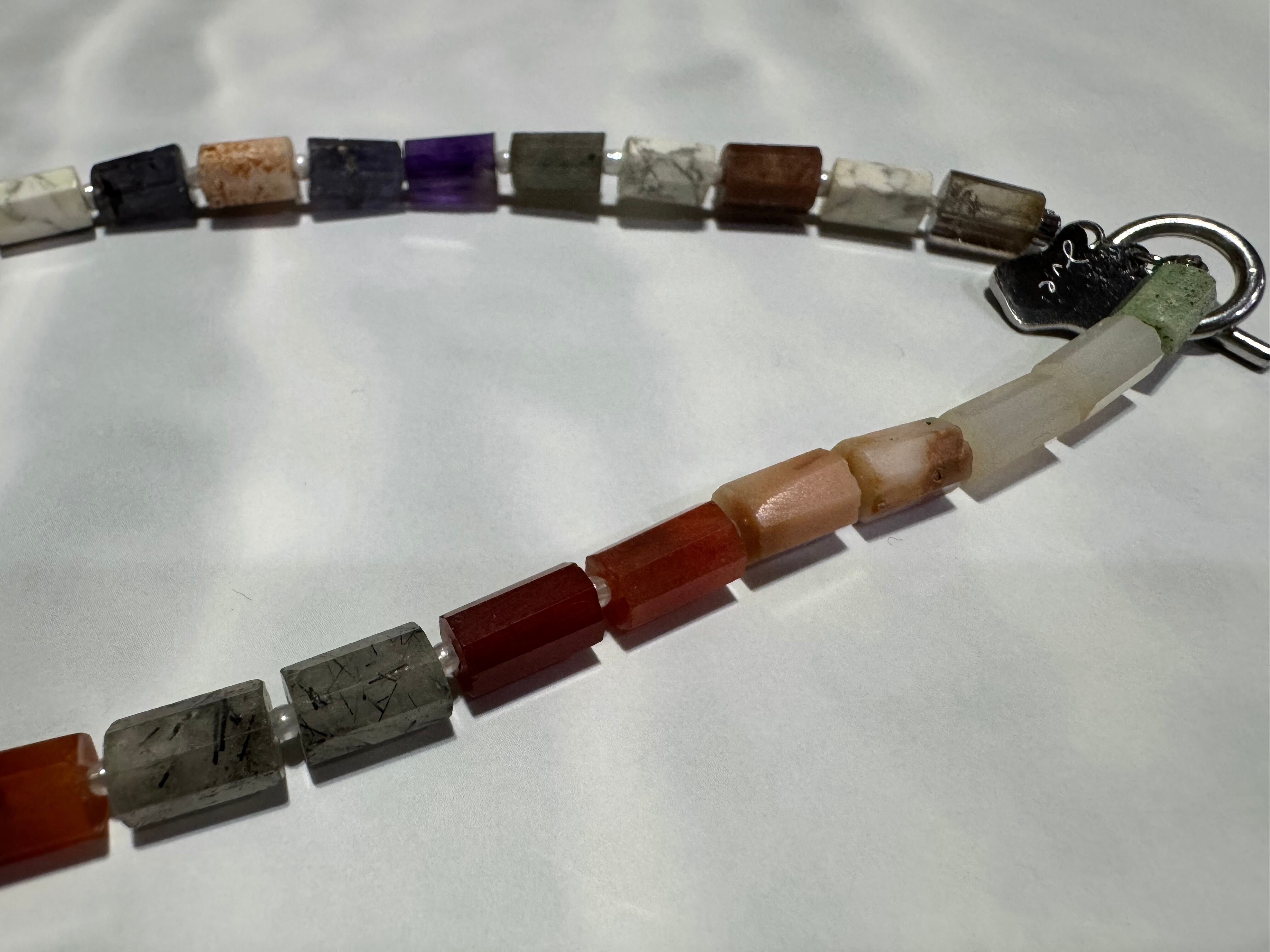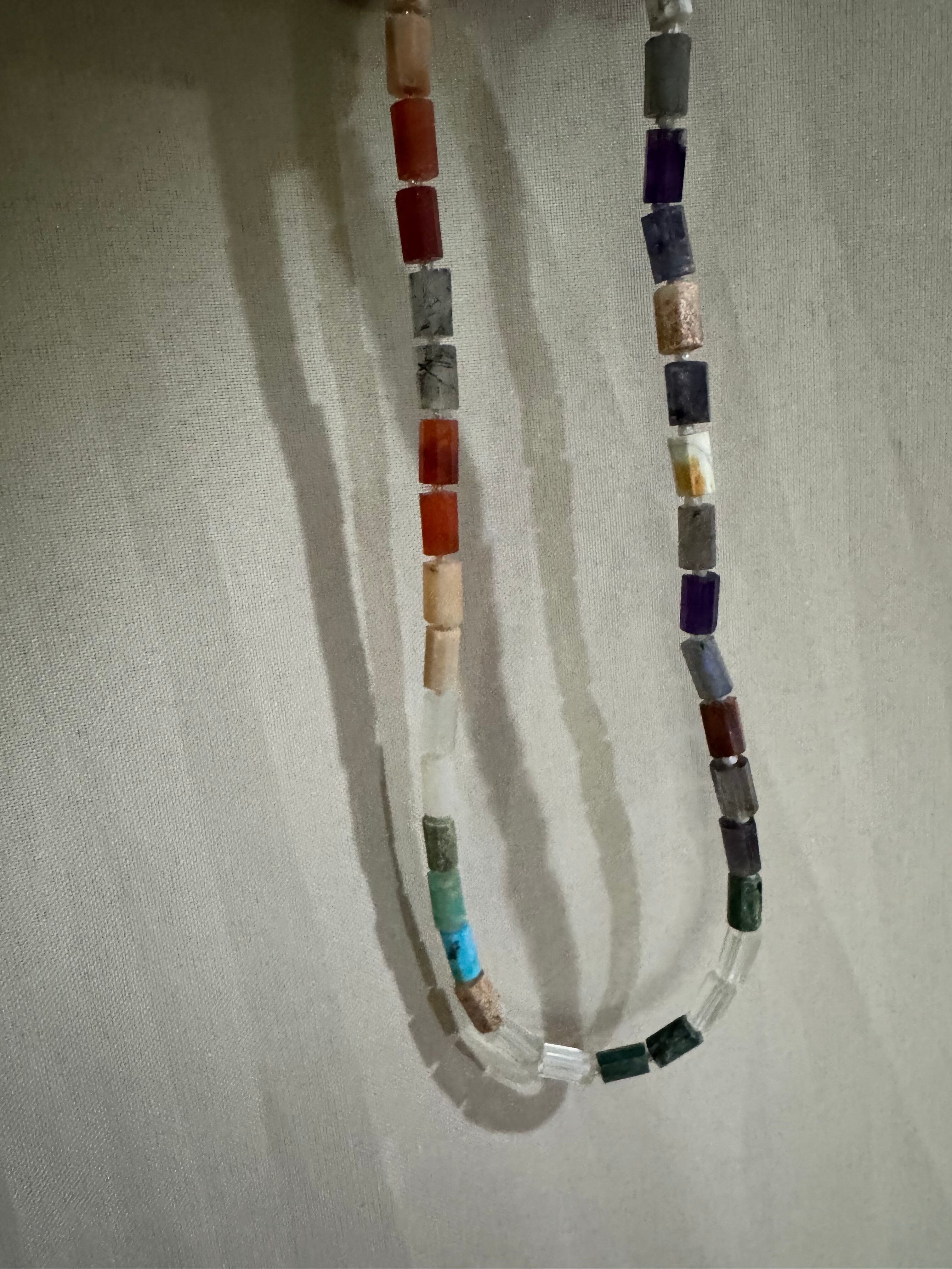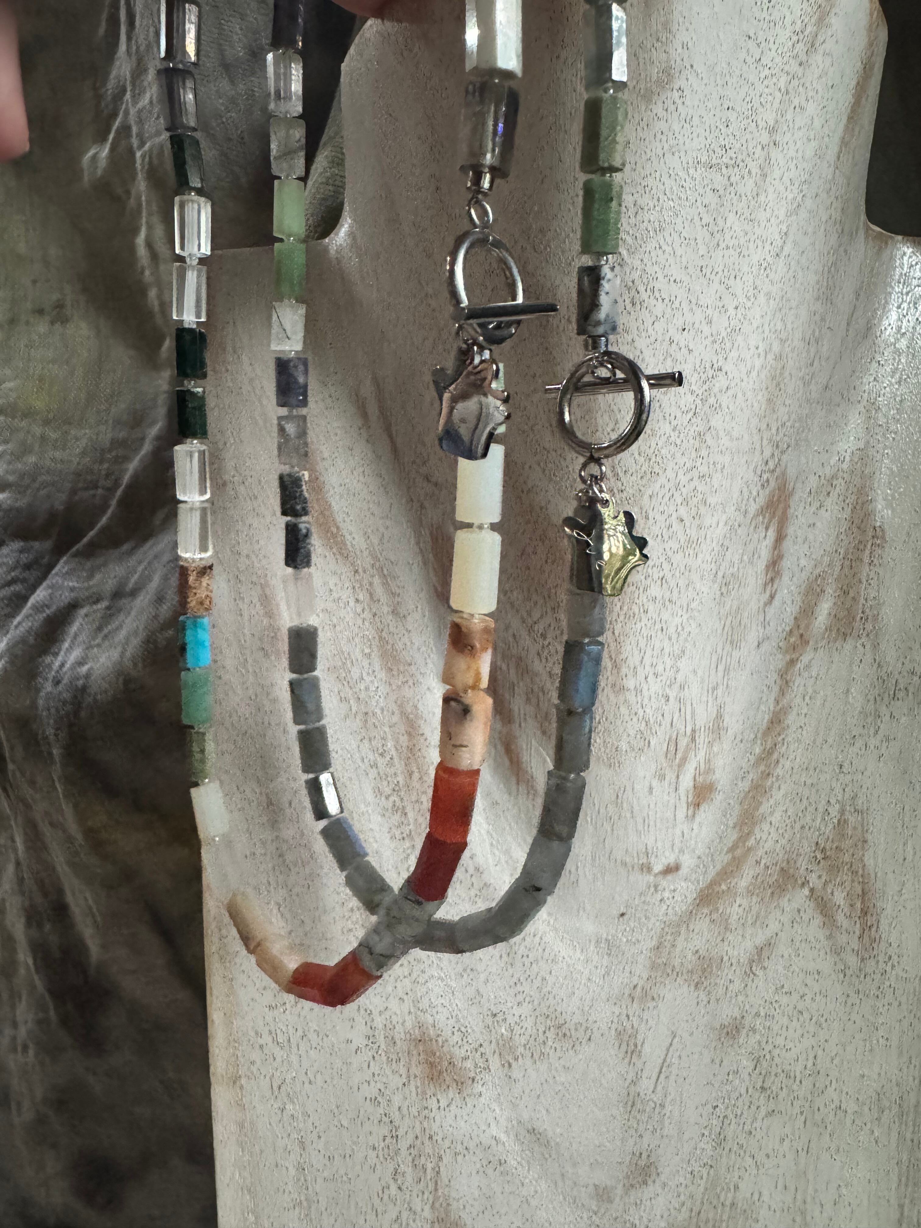 天然石mix colorのかっこよくカットされているネックレス